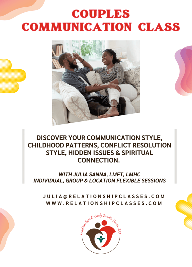 Sign Up: Call, text 561-889-1323, email julia@relationshipclasses.com or use the Contact form for more information and to register for sessions.